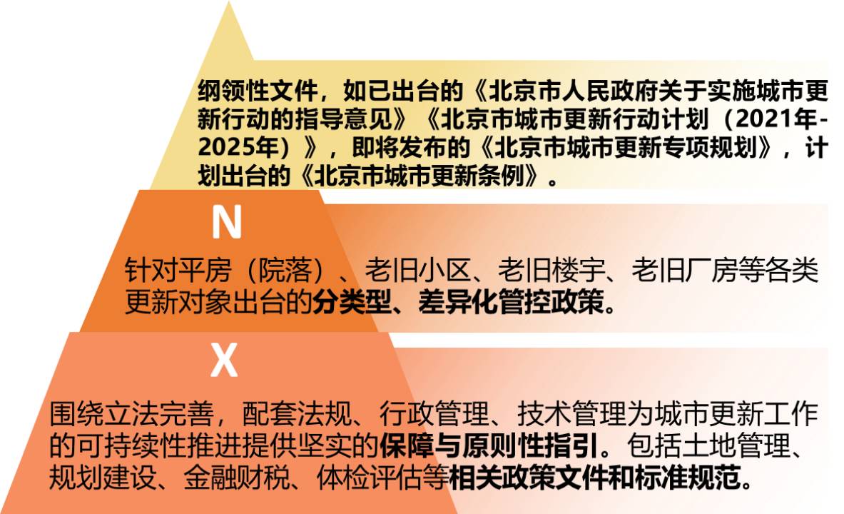 2.激发市场活力,释放政策红利,搭建北京城市更新的“1+N+X”政策体系,建立了政策动态更新的工作机制。