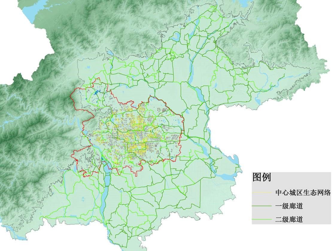 为落实和深化《北京市城市总体规划(2016年-2035年)》中生态保护规划的内容,北京市规划和自然资源委员会组织开展了城市生态网络的规划研究,分别在三个研究尺度下建立了“绿-绿”和“人-绿”之间的生态网络。
