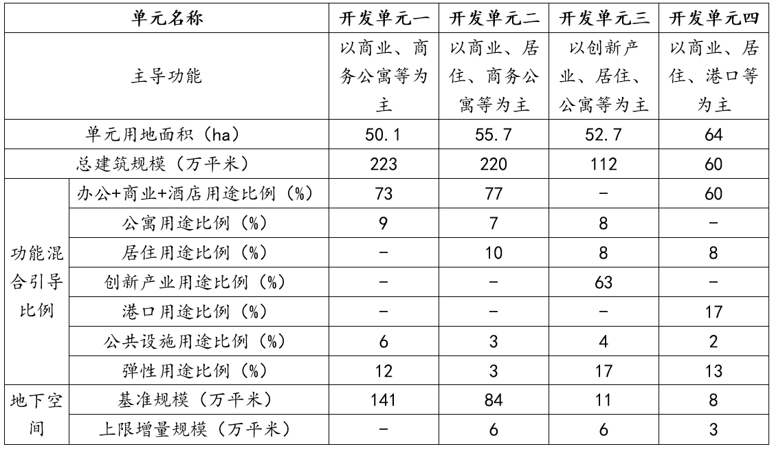 表2 深圳前海蛇口自贸区开发单元控制表(数据来源:前海蛇口自贸区开发单元规划)