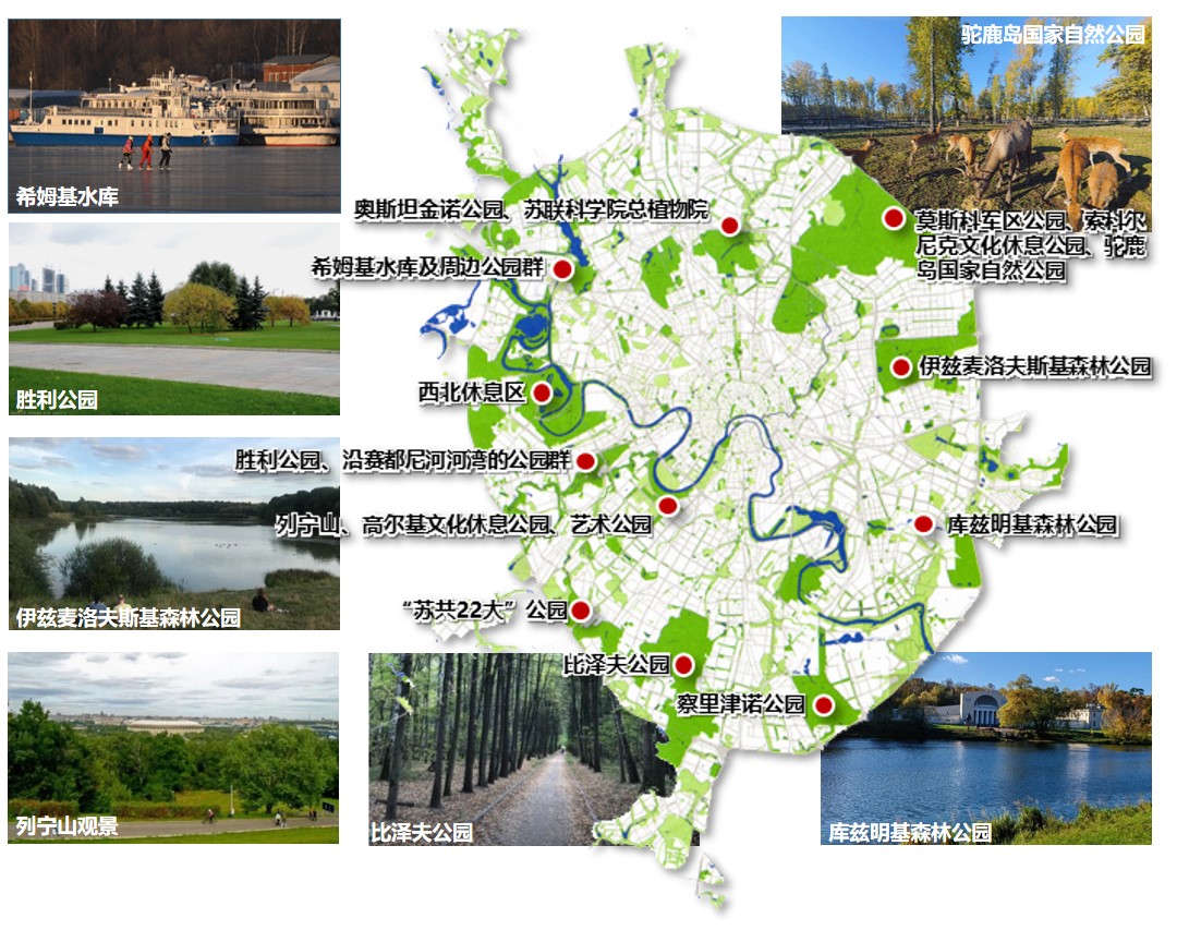 莫斯科市城市绿楔作为全球典范,推动莫斯科实现了从“沙漠城市”到“绿色首都”的转变。城市绿楔既是莫斯科市域城市空间的重要组成,也是莫斯科市与莫斯科州之间互联互通的大尺度生态空间。一方面,发挥着遏制城市蔓延、完善生态系统、提供游憩服务的重要作用,另一方面,是联系环城森林,将郊区森林引入城市的关键空间。在莫斯科市城市绿楔的建设过程中,发展出了自然综合体的理念,要求统筹城市自然景观、休闲游憩场地、自然生态服务等,整合分散绿地,串联生态空间,推动完善城市绿楔的生态功能。时至今日,莫斯科市城市绿楔与城市功能紧密结合,在构建跨域大尺度绿色空间、优化城绿空间结构关系、打造连续开敞自然综合体、实行严格保护管理等方面,为同样具有楔形结构特征的北京市绿化隔离地区的建设,提供了丰富经验。