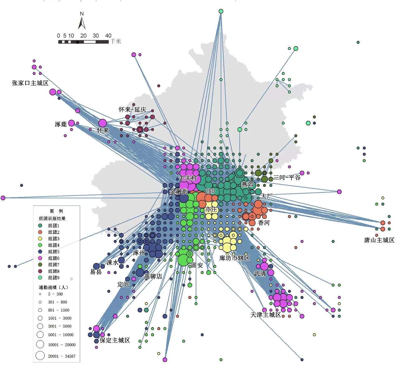 从跨界通勤视角审视北京与环京地区关系的新变化,基于行政边界和5km 网格两种空间单元,通过通勤率、通勤规模等指标测算,识别进入北京通勤圈的主要环京区县。结合职住空间分布、人口属性等分析通勤圈发展特征,发现跨界通勤向着网络化格局发展,当前已形成5条主要通勤廊道、3类通勤目的地、4种不同驱动力的典型跨界通勤模式。未来应正视环京地区跨界通勤的必要性和必然性,强化北京通勤圈内城镇组团互补融合发展,形成“圈层补充、廊道串联、簇轴发展”的空间结构。